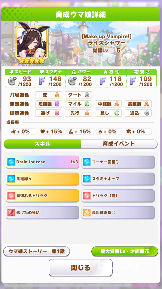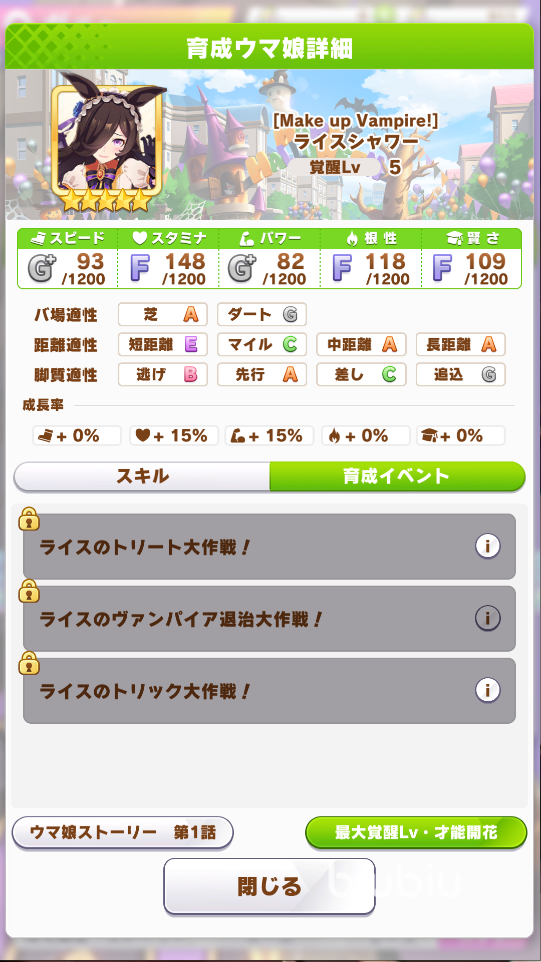 在實戰(zhàn)中,萬圣米浴的主要跑法為差行,也就是在比賽中后盤發(fā)力超越的一種跑法類型。萬圣米浴本身又屬于短距離和中距離特化的馬娘,因此對培育的屬性整體而言要求沒有那么高,對于萌新小伙伴而言培育的上手難度還是比較低的。