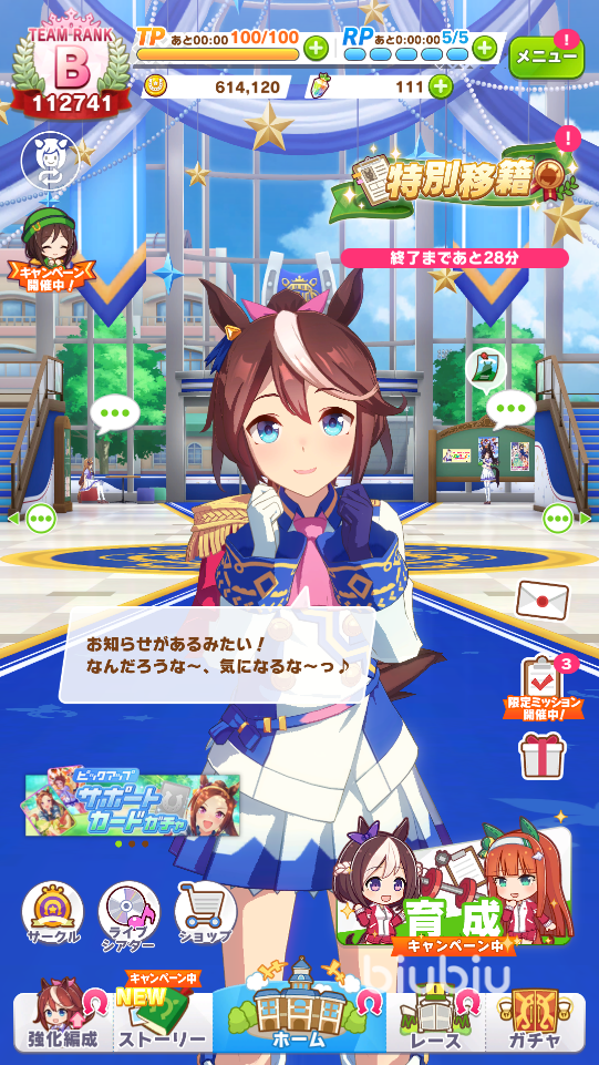 青春杯活動(dòng)是一個(gè)規(guī)模較大的綜合型活動(dòng),它的玩法仍然圍繞著培育馬娘展開。該活動(dòng)可以分為馬娘培育,PT點(diǎn)數(shù)兌換,活動(dòng)轉(zhuǎn)盤和活動(dòng)商店四個(gè)模塊。首先是最簡(jiǎn)單的馬娘培育,這個(gè)想必大家都很熟悉,只不過在活動(dòng)期間如果使用新推出的兩位馬娘角色或者三個(gè)新的SSR支援卡的話,能夠在結(jié)算界面獲得額外的活動(dòng)獎(jiǎng)勵(lì)。