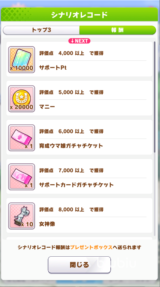 然后是PT點(diǎn)數(shù)兌換,PT點(diǎn)數(shù)相當(dāng)于是青春杯的活動(dòng)積分,可以通過每次完成培育來獲得,培育的馬娘越優(yōu)秀則獲得的PT點(diǎn)數(shù)就越多,使用活動(dòng)馬娘和支援卡的話還會(huì)有額外的PT加成。在活動(dòng)的主界面我們可以看到一個(gè)專門的活動(dòng)PT點(diǎn)數(shù)兌換框,每當(dāng)PT點(diǎn)數(shù)到達(dá)一個(gè)層次大家就可以兌換對(duì)應(yīng)層次的獎(jiǎng)勵(lì),獎(jiǎng)勵(lì)包括了角色碎片,SSR支援卡,女神像以及大量的金幣。
