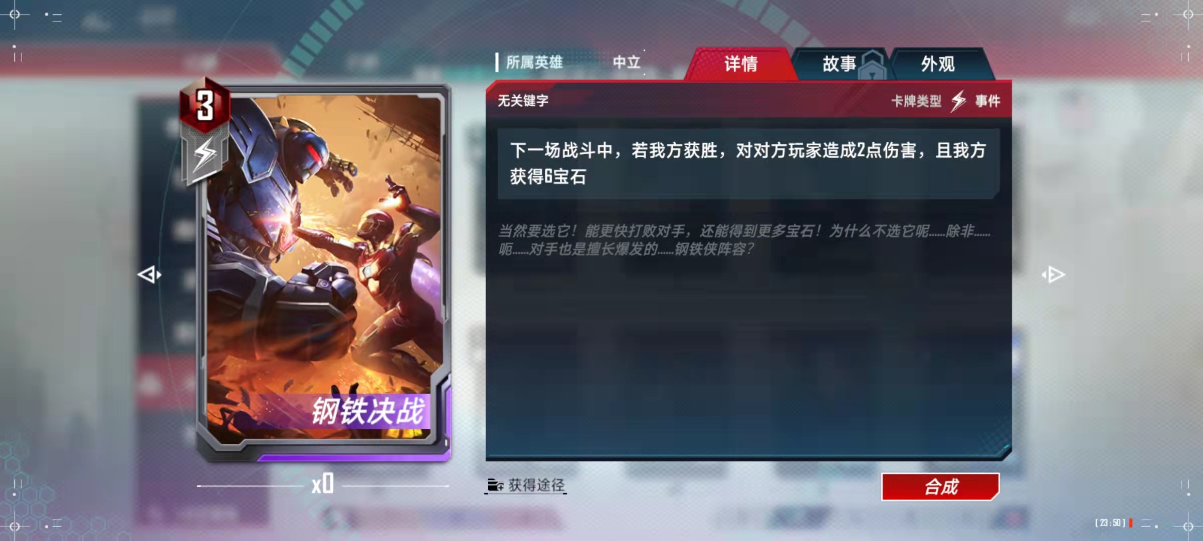 鋼鐵決戰(zhàn)是中后期發(fā)力,中期利用勝利之后可以多獲得六個寶石非常美麗,后期只要是增加的兩點傷害也是白撿的便宜。黃蜂女打出之后可以刷新商店,商店中每多一張進(jìn)攻性的卡牌,那么自身就能增加兩點戰(zhàn)斗力。而且具有暴擊屬性,這張卡牌是前期最關(guān)鍵的,在鷹眼出來之前,黃蜂女配合著商店等級越來越高,自身獲得的額外攻擊力也越高,輸出非常暴力。爆炸陷阱需要帶一張,對敵方造成一次傷害,幻視也是一張暴擊核心牌,在自身相鄰的角色被眩暈的時候,可以解除眩暈,并且增加對方的三點戰(zhàn)斗力,惡性怪的作用是將對方兩個不具有暴擊的角色進(jìn)行眩暈。