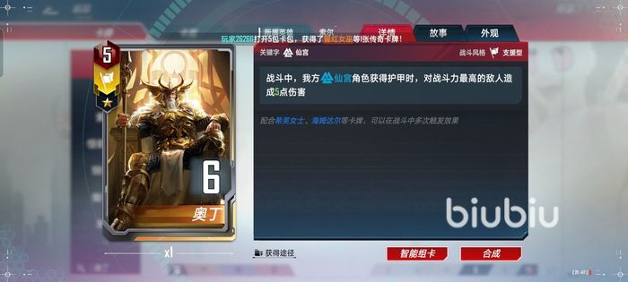 奧丁這張卡是仙宮打雷這個卡組當中唯一的輸出核心,所以小編建議各位小伙伴在各位仙宮打雷配卡的時候,盡量選擇4張奧丁,如果沒有的話2張奧丁是必備的。各位小伙伴,如果在卡組當中配備了4張奧丁的話,那么他的輸出是非??植赖?。當陣容中的仙宮卡獲得護甲的時候,那么奧丁會對敵方輸出最高的單位造成20點傷害,這個效果配合海爾達姆在一場對決當中可以觸發(fā)多次傷害。
