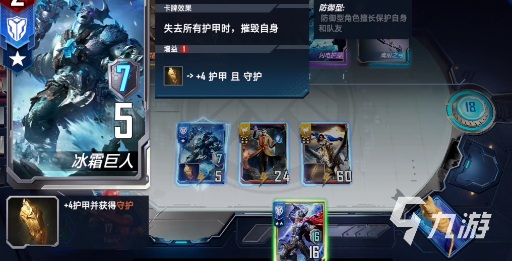 二、如果有阿斯加德守衛(wèi)軍和其他的防御型卡牌的話,大家在購買后可以將守衛(wèi)軍擺放在最前面,能夠保證守衛(wèi)軍先陣亡,在后面的回合中因為守衛(wèi)軍戰(zhàn)力比較的低,可以盡量的擺放在后面,但要要保證能夠優(yōu)先陣亡buff其他卡牌。