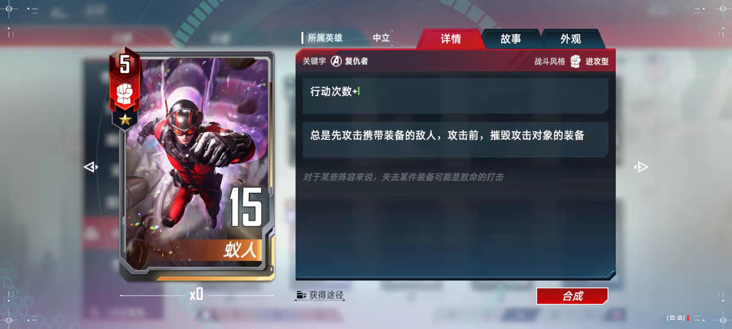蟻人這張卡牌總是選擇對(duì)方帶有裝備的卡牌進(jìn)行攻擊,并且在計(jì)算傷害之前就先將對(duì)方的裝備摧毀,對(duì)于一些依賴裝備的流派能起到很好的效果,將對(duì)方的核心卡牌裝備打掉,對(duì)方肯定很郁悶。最后的鷹眼是決定勝利的,除了非常特殊的情況,一旦暴擊流成功的出來鷹眼,那就意味著勝利唾手可得。