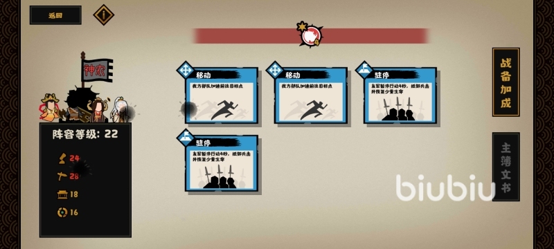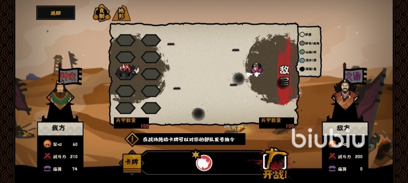 涿鹿之戰(zhàn)部分需要玩家們進(jìn)行戰(zhàn)斗,雖然說(shuō)軍心在很大程度上影響著玩家們軍隊(duì)的戰(zhàn)斗力,但是這個(gè)模式不需要任何的探索力,也就是說(shuō)直接通關(guān)相應(yīng)的關(guān)卡進(jìn)行戰(zhàn)斗即可,因此玩家們可以舍棄廟算等相關(guān)屬性來(lái)增加軍隊(duì)的軍心和戰(zhàn)斗力等相關(guān)方面,其他天賦的選擇以及名臣的搭配也都要以提升戰(zhàn)斗力為主。