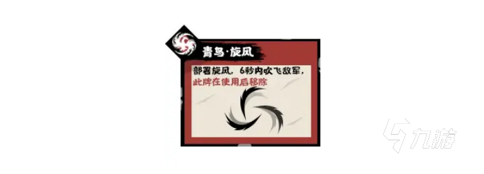 白虎武威卡提升我方部隊(duì)十秒鐘之內(nèi)的輸出和移動(dòng)速度。青鳥旋風(fēng)卡部署出旋風(fēng),在六秒鐘之內(nèi)將對(duì)手兵吹飛。神農(nóng)的玄武治愈卡牌讓我方部隊(duì)的防御力和生命值在十五秒鐘之內(nèi)增強(qiáng)。