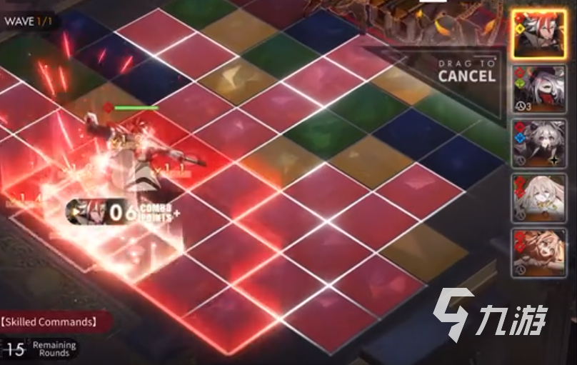 連鎖技能赤熱砂焰:對范圍內(nèi)的敵人造成攻擊力百分比的傷害。技能范圍隨著連擊格子數(shù)的增加而增加,成米字形擴散。