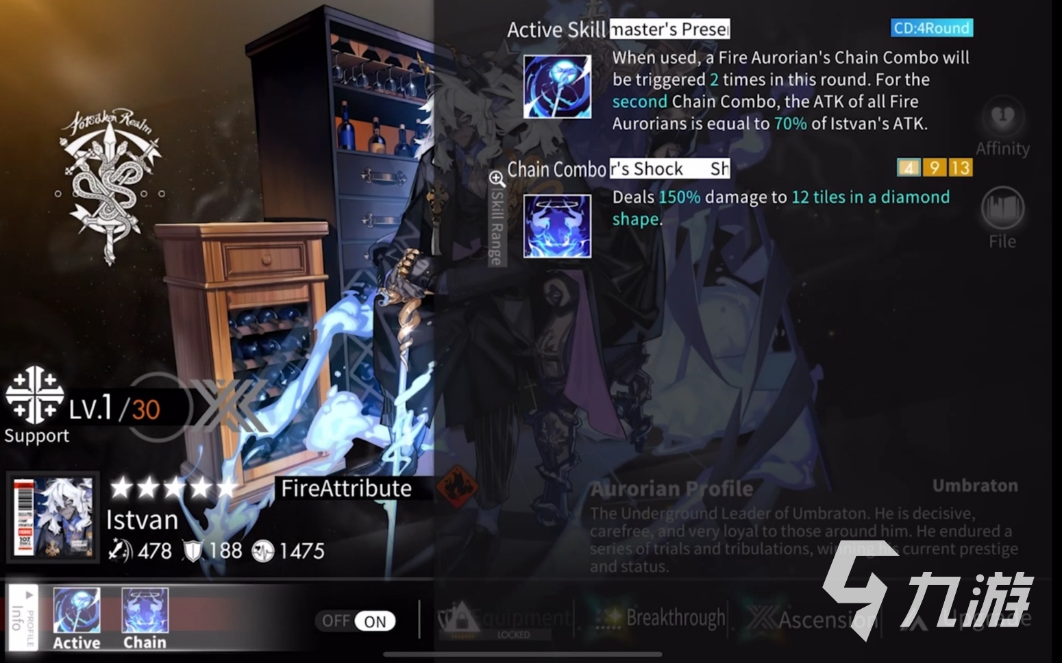 連鎖技能影主震懾:對(duì)自身單位周圍范圍造成攻擊力的百分比傷害,該技能連鎖格子數(shù)越高造成的傷害越高范圍越大,范圍最高可以到達(dá)米字型最大格。該技能造成傷害的基礎(chǔ)百分比不如卡戎,都是二覺(jué),卡戎造成300%攻擊力的傷害而伊斯塔萬(wàn)只能造成160%攻擊的傷害,但是該角色技能攻擊距離更大,而且特殊的技能方向在一些針對(duì)的關(guān)卡中有重要作用。