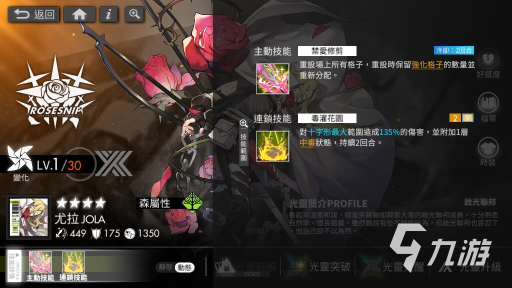 隊伍當中的第二名異常角色推薦大家使用四星的尤拉,屬性和萊斯特一樣,兩人在戰(zhàn)斗當中可以同時出現(xiàn)并攻擊敵人。而尤拉的連鎖技能毒灌花園在觸發(fā)之后,可以對十字形范圍內(nèi)的敵人造成高額傷害,同樣會直接給敵人附加上兩個回合的中毒效果。與萊斯特的中毒搭配在一起之后,敵人基本上無法從中毒當中走出來。