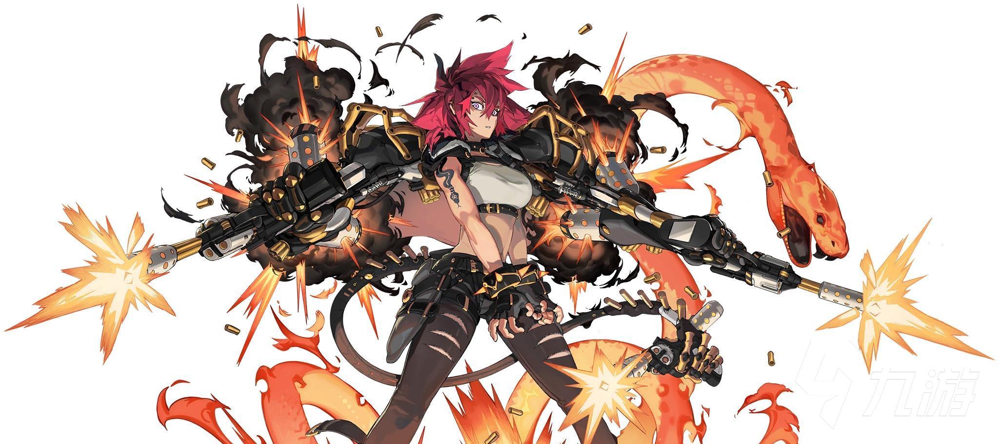 約拿是一名主屬性為火副屬性為雷的六星狙擊角色,稱號是爆炎統(tǒng)使,立繪形象也是一個手握多支機槍的暴力少女,可以通過卡池抽取獲得。