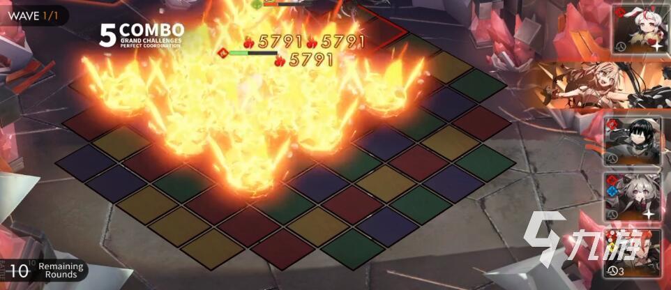 第三回合,玩家們只需要選擇周圍數(shù)量最多的方塊進行移動即可,敵人依然會承受一波連鎖技能的傷害。隨后進入到第四回合,隊伍當中的主動技能又冷卻完畢,而玩家們只需要再一次釋放這些技能,就可以輕松的將敵人給全部解決掉。這一套陣容的核心優(yōu)勢也在于主動技能冷卻時間很快,玩家合理運用就行。