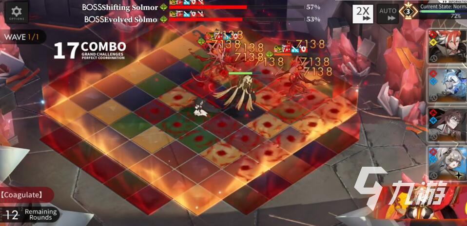 其余角色方面,建議玩家們使用約娜、雷吉娜、微絲、沙利葉即可。水屬性與火屬性的搭配,可以更輕松的對敵人造成有效傷害。進入到第一回合之后,敵人會優(yōu)先發(fā)動一波進攻,此時玩家們會承受高達10000點的傷害,所以在接下來的行動當中,就一定要優(yōu)先選擇綠色方塊來進行生命治療。