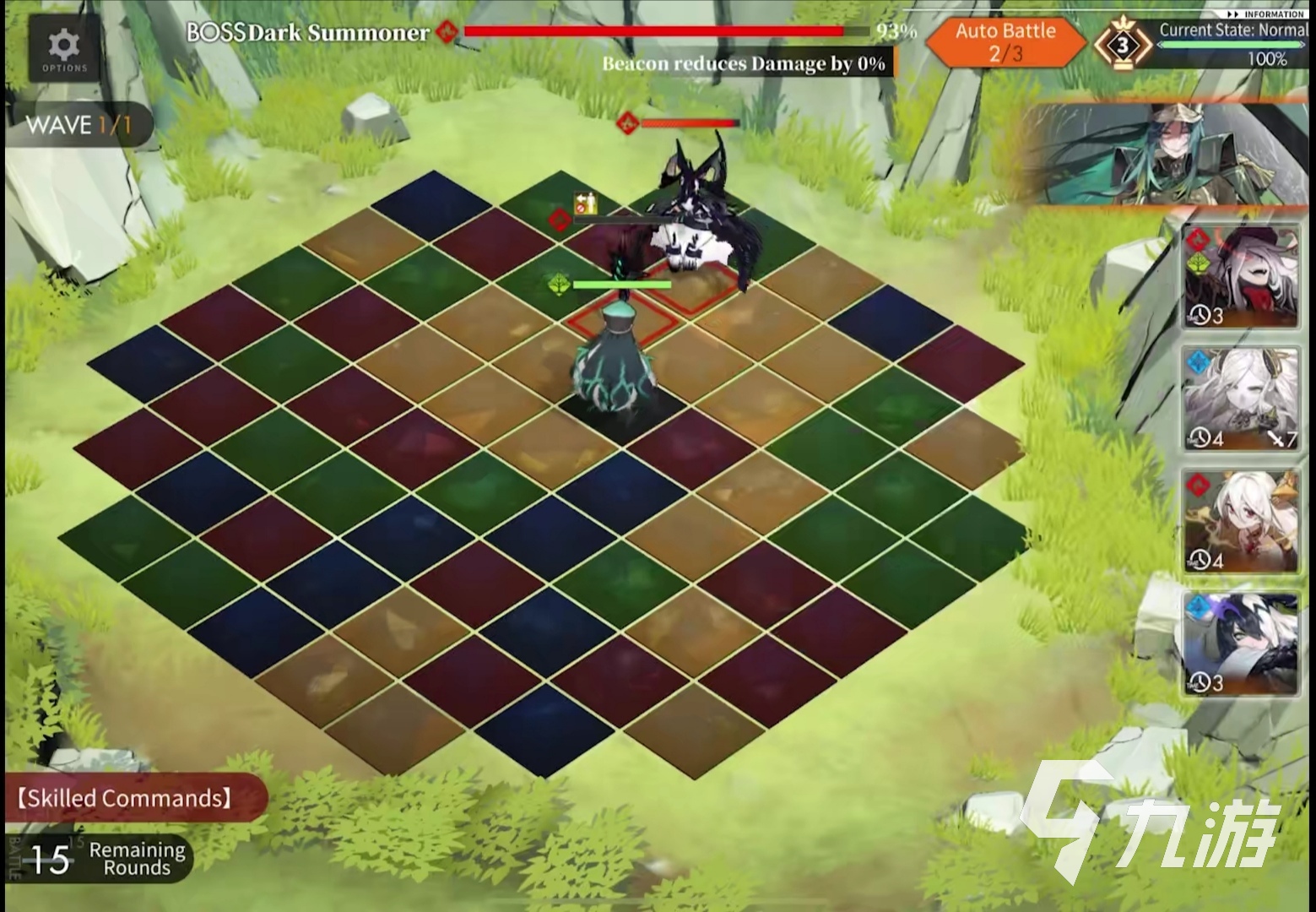 連鎖技能影棘:對周圍范圍內(nèi)的敵方單位造成攻擊力百分比的傷害,連鎖技能的范圍跟可以攻擊的敵人單位數(shù)量和連擊格子數(shù)有關(guān),連擊格子數(shù)越多范圍越大能造成傷害的敵人也越多,最大的范圍為自身周圍三圈,最多能對4名敵方單位造成傷害。