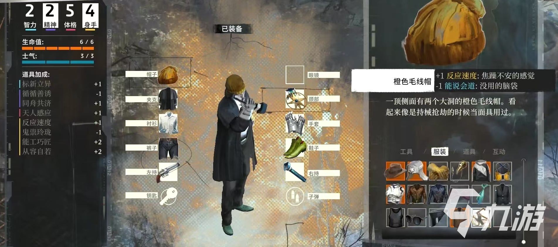 先來看一下帽子,橙色毛線帽,在后院可以獲得,增加1點反應(yīng)速度,降低1點能說會道。兩棲動物運動遮陽帽,五感發(fā)達(dá)增加1點,在席勒處可以獲得。迪克馬倫的帽子,在安妮特處獲得,效果是博學(xué)多聞增加1點。RCM警督帽,在豬豬女俠處獲得,爭強(qiáng)好勝增加1點。FALN“皮波”羊毛帽,效果是增加2點邏輯思維,減少1點五感發(fā)達(dá),可以在菲爾德大廈獲得。