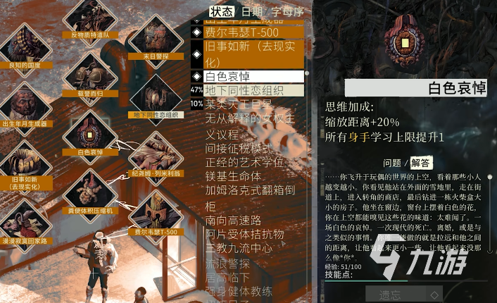 游戲背景雖然設(shè)定在了瑞瓦肖城內(nèi),不過這個城鎮(zhèn)地圖足夠大,高度自由的探索玩法會讓玩家有機(jī)會觸發(fā)分支劇情,通過分支劇情讓玩家對這個城鎮(zhèn)各個居民npc有更多的了解??v觀這些案件劇情,它們的背后何嘗不是不同政治理念的碰撞。面對不同政治理念npc時,要注意對話過程中政治立場的偏向,會讓玩家更容易找到對話過程中的矛盾點(diǎn),從而找出自己需要的證據(jù)內(nèi)容,解鎖各個npc的對話還能幫助玩家提升角色的思維能力。