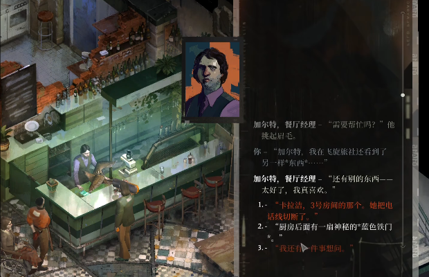 游戲中玩家是一位擁有很多技能的探員,在瑞瓦肖城內(nèi)的馬丁斯內(nèi)調(diào)查各類案件,他需要穿梭于城市的各個角落,和生活在這個片區(qū)的npc進(jìn)行互動和交流,通過和他們對話中找到破案的關(guān)鍵線索,詢問的人可能是嫌疑人,也有可能是見證者,也有可能只是單純的npc,如何判斷他們的身份就看玩家的對話選擇了,不同的選擇會引發(fā)不同的對話走向,甚至還有可能解鎖隱藏劇情,因此游戲過程中非常考驗(yàn)玩家的辯證能力。如果玩家對npc的身份有一點(diǎn)存疑,利用技能來進(jìn)行判斷也是不錯的方式。在技能中玩家有20多種技能可以選擇,也就意味著玩家能有多個技能組合,在遇到推導(dǎo)不下去劇情時可以嘗試不同的技能組合。