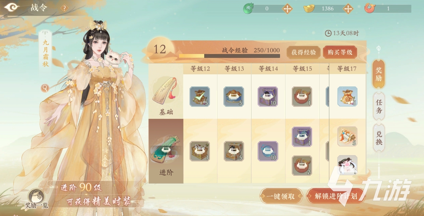 第二種為高級獎勵,高級獎勵需要玩家先解鎖進階版才能領(lǐng)取,進階版分為兩種,第一種為普通進階版,花費40元即可解鎖,第二種為典藏進階版,花費98元可以解鎖,解鎖之后玩家能領(lǐng)取包含進階計劃里面的所有權(quán)益,還有專屬的限時稱號叱咤風云,等級也將直升二十級。高級獎勵里面的獎品包括特定的時裝,戰(zhàn)令幣,滄海冊,萬能碎片,聊天氣泡,頭像框。