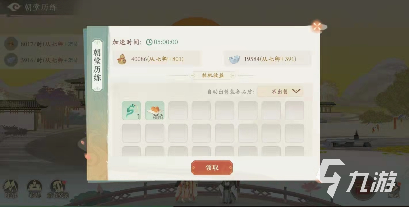 第四種方法是通過出游玩法獲取,出游屬于游戲內(nèi)一個(gè)比較有趣的玩法,玩家可以派遣隨從出游游玩,出游可以觸發(fā)很多突發(fā)事件,像制作香囊,購買禮物等等,出游時(shí)間結(jié)束之后,玩家可在出游派遣界面領(lǐng)取到銀兩以及其他材料獎(jiǎng)勵(lì)。