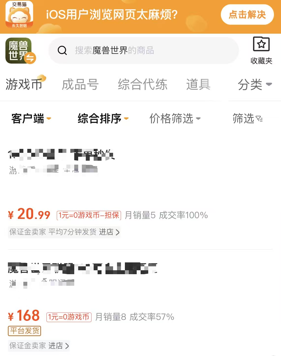 總之想要買金幣的話,交易貓這個平臺就很不錯。它專門有魔獸世界金幣交易的分區(qū),找起來很方便。交易過程有平臺托管,安全有保障。從交易開始到結束,每個環(huán)節(jié)都考慮得很周到。還有公平公正的信用體系。不管你用的是安卓手機還是蘋果手機,都能很快上手,輕松完成金幣交易。如果你還在為魔獸金幣交易的安全和便捷而煩惱,那么不妨選擇交易貓。