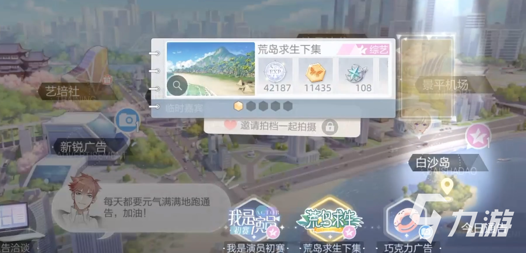 玩家們的通告行程大部分都是拍戲、舉辦粉絲見面會、培訓(xùn)或是節(jié)目拍攝,對于新手玩家而言最好多選擇一些節(jié)目拍攝類的通告行程。其中,荒野求生這個(gè)通告節(jié)目是最適合新手的。該通告是綜藝節(jié)目拍攝,沒有屬性要求,但是可以幫玩家們快速積攢人氣。