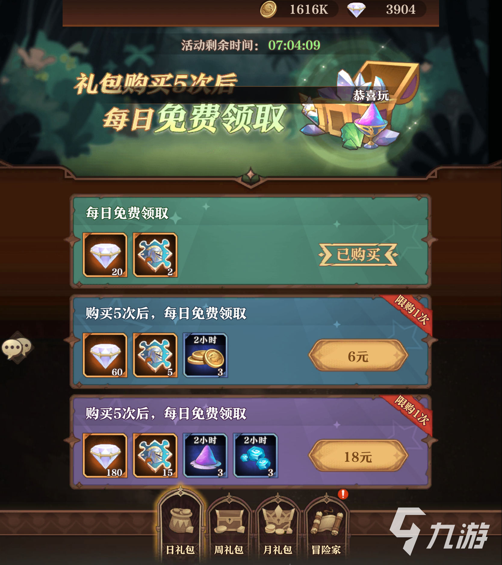 另外一個氪金點就是周特權(quán),六元購買之后就可以開啟每日額外領(lǐng)取復(fù)活藥水以及競技場免費(fèi)挑戰(zhàn)次數(shù),還有其他的個人懸賞以及團(tuán)隊?wèi)屹p任務(wù),并且購買四次之后,也就是總共花費(fèi)24元,這些都可以解鎖,并不是那么氪金。