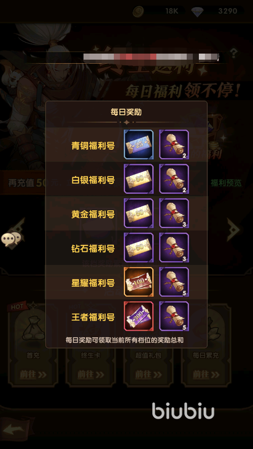 (1)福利號每天可以領取已達成等級的所有獎勵(當天未領取可以累計至下一天以此類推)。
