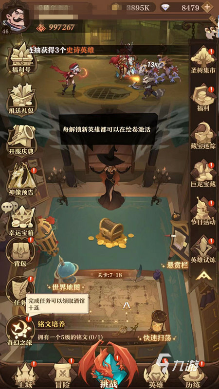 玩家進(jìn)入游戲后可以看到主城,冒險(xiǎn),戰(zhàn)役等各種不同的頁面,在戰(zhàn)役中包括懸賞欄活動(dòng),在懸賞欄中包括個(gè)人懸賞和團(tuán)隊(duì)?wèi)屹p,玩家可以通過接受懸賞任務(wù),通過派遣英雄完成相應(yīng)的懸賞任務(wù),當(dāng)英雄完成任務(wù)后,可以獲得相應(yīng)的任務(wù)獎(jiǎng)勵(lì)。在團(tuán)隊(duì)?wèi)屹p中,玩家通過執(zhí)行團(tuán)隊(duì)?wèi)屹p時(shí),需要借助伙伴英雄的幫助。