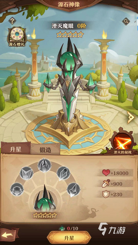 玩家在主頁面可以看到源石神像活動(dòng),在原始神像活動(dòng)中包括多種不同的神像,每一個(gè)神像都包括升星和鍛造頁面。原始神像培養(yǎng)所有屬性將會(huì)給全體英雄進(jìn)行加成,神像培養(yǎng)分為升星和鍛造升星,需要消耗同名神像碎片獲得大幅度屬性漲幅,鍛造將消耗源石,每次鍛造到指定階段,可以使用突破石頭進(jìn)行突破,獲得天賦屬性。