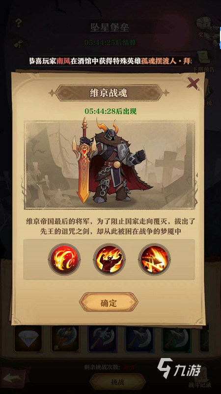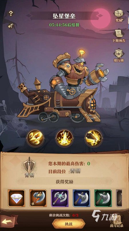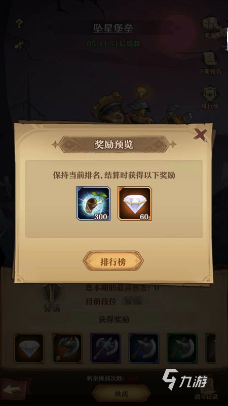 當(dāng)挑戰(zhàn)成功后,可以獲得多種道具,其中包括鉆石,裝備以及錢幣等。排行榜中可以看到相應(yīng)的傷害值和等級(jí),排名次數(shù)每日挑戰(zhàn)可以使用三次,當(dāng)挑戰(zhàn)次數(shù)用完后即不可再進(jìn)行挑戰(zhàn),每日有固定的boss。玩家可以根據(jù)固定boss的技能進(jìn)行適當(dāng)調(diào)整戰(zhàn)隊(duì)英雄以及隊(duì)列陣容可以快速挑戰(zhàn)boss并獲得道具獎(jiǎng)勵(lì)。