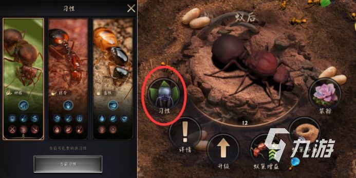 此外,螞蟻們也有各種各樣的習性,主要有種植、掠奪、畜牧這三種,而習性不一樣,其對應的習性建筑自然也是不一樣的,這些習性建筑也是可以一一建造的。