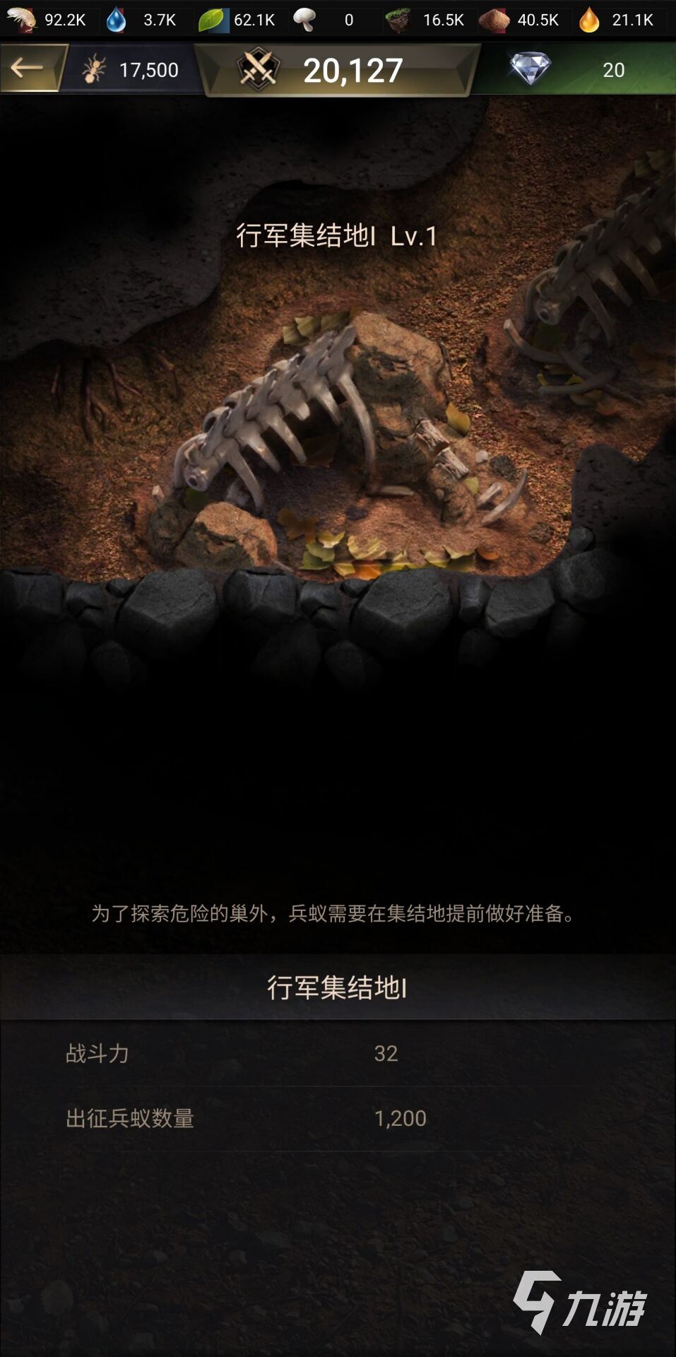 行軍集結(jié)地:這里面一般只能設(shè)置三個陣容,等級越高,所出戰(zhàn)的螞蟻的數(shù)量也就越多,每次當(dāng)玩家們想要探索巢穴口外面的話,就必須集結(jié)一定數(shù)量的兵蟻在行軍集結(jié)地。