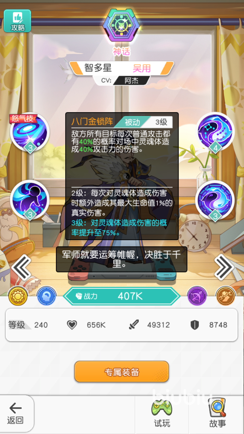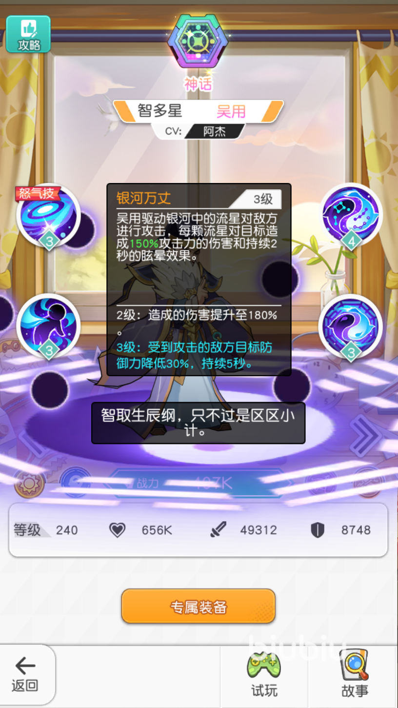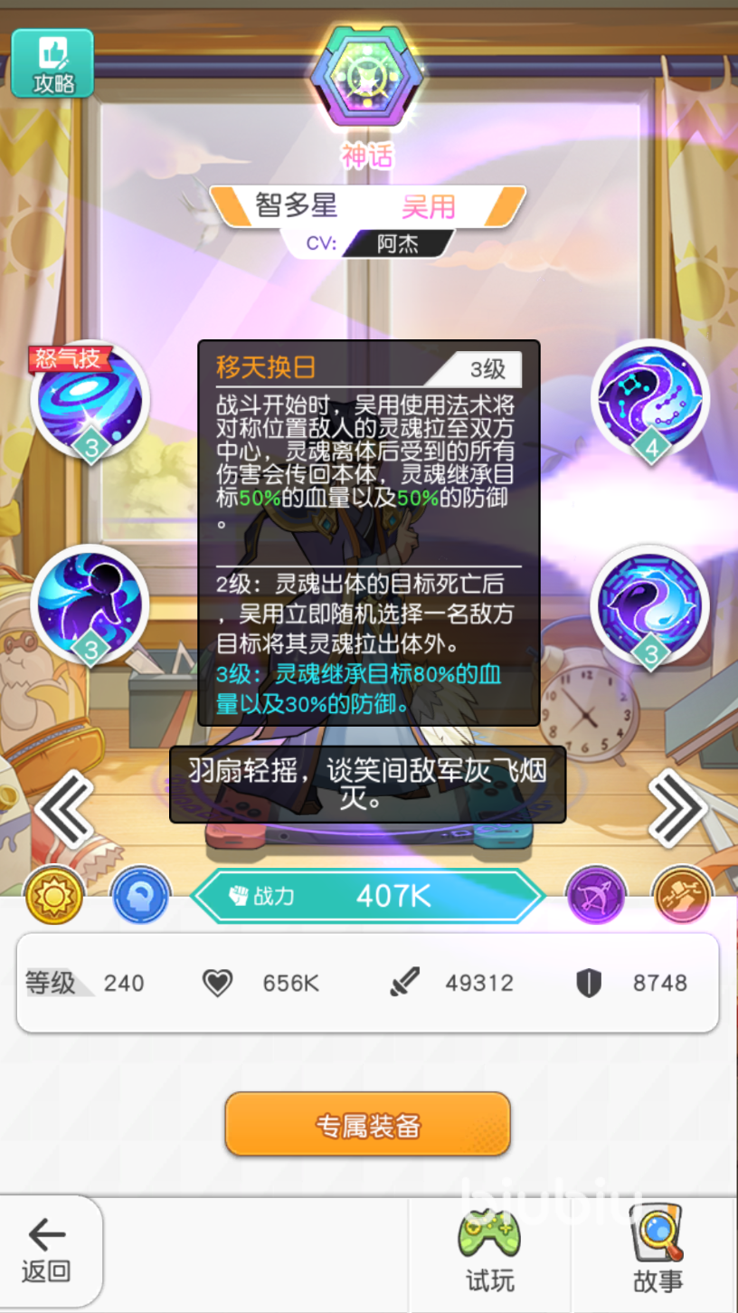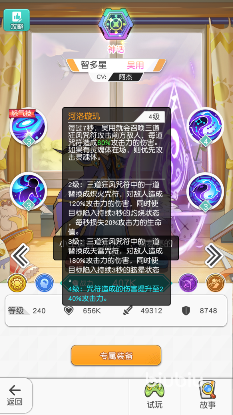 來源: 極光 作者: 九離 2021年09月26日 16:33最近很多小伙伴在玩小浣熊百將傳的時(shí)候都遇到了很多問題,那么今天小編給大家?guī)砹诵′叫馨賹鲄怯眉寄芊治?,小伙伴們看完這篇攻略之后將會對吳用這名英雄有一個(gè)更全面的認(rèn)識,下面就讓我們一起來看一下他的技能吧。