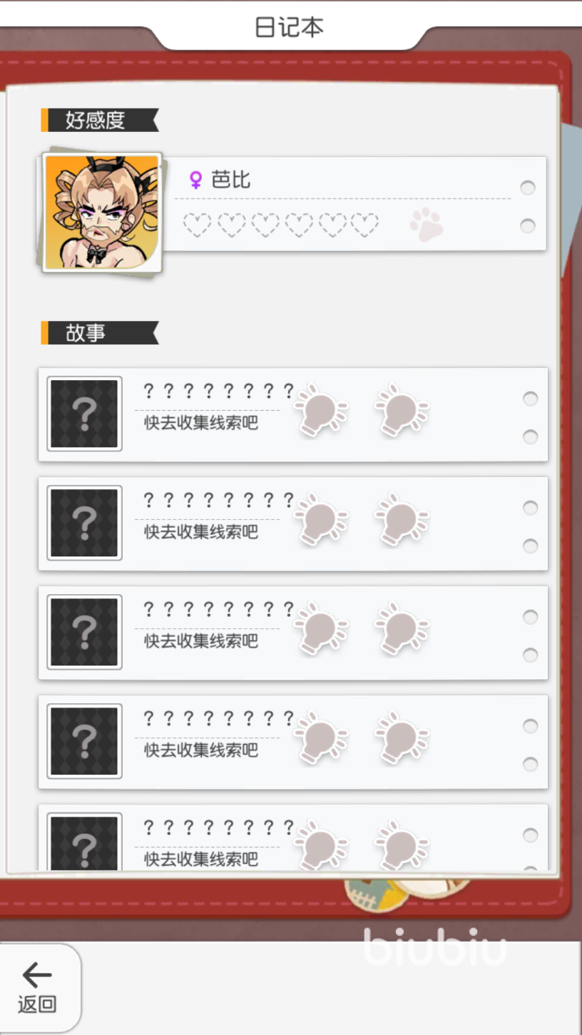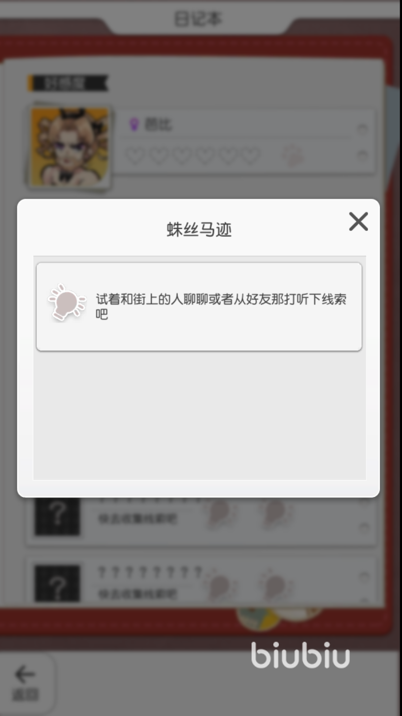開(kāi)啟好感任務(wù)的進(jìn)度之后就需要去找相關(guān)的線索,游戲中的提示一般都是讓我們?nèi)ヅc人物對(duì)話,但是具體和誰(shuí)對(duì)話提示也不會(huì)告訴大家。這里小伙伴們需要先把主線人物打通到第十章左右,雖然要求比較高,但是芭比也是在筆記中很靠后的人物了,所以一般要求的主線任務(wù)進(jìn)度也比較高,打通第十章之后我們需要去街區(qū)中和每個(gè)人進(jìn)行對(duì)話,之后就能開(kāi)啟芭比的好感度任務(wù)的第一章了。