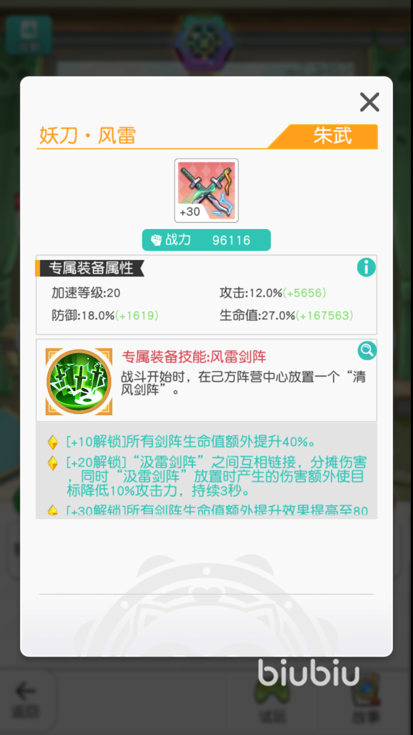 朱武的大招風(fēng)雷咒殺陣是一個(gè)全體攻擊的技能,傷害比較高,升級(jí)到后期可以做為群體輸出的利器。一技能是制造一個(gè)劍陣,這個(gè)劍陣可以攻擊敵人,并且還能吸引一波仇恨,這個(gè)劍陣的血量還是很厚的,在一些僵持的戰(zhàn)斗中可以很好的拉攏仇恨,讓其他武將進(jìn)行輸出。二技能則是一個(gè)回血技能,單體回血能力比較強(qiáng)群體回血能力比較弱,一般情況下使用沒(méi)有什么特異之處。