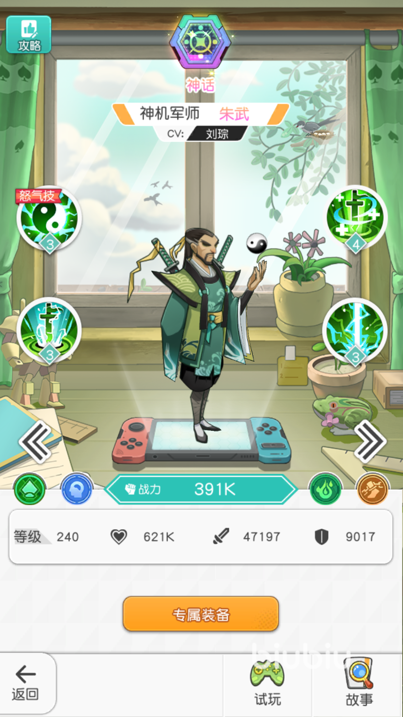 首先我們可以從圖鑒中得知朱武是一名春屬性的智慧型武將擅長(zhǎng)魔法傷害,其主要職業(yè)是輔助次要職業(yè)是控制,這種類(lèi)型的武將一般都有一個(gè)最大的特點(diǎn),那就是太平衡了,有防御力有攻擊力也有恢復(fù)能力,所以在什么場(chǎng)合都可以用但又都不是很強(qiáng)。小伙伴們要是前期沒(méi)有一個(gè)好一點(diǎn)的武將的話(huà)可以使用一下,不然到了中后期沒(méi)有對(duì)應(yīng)的陣容是很難玩的。