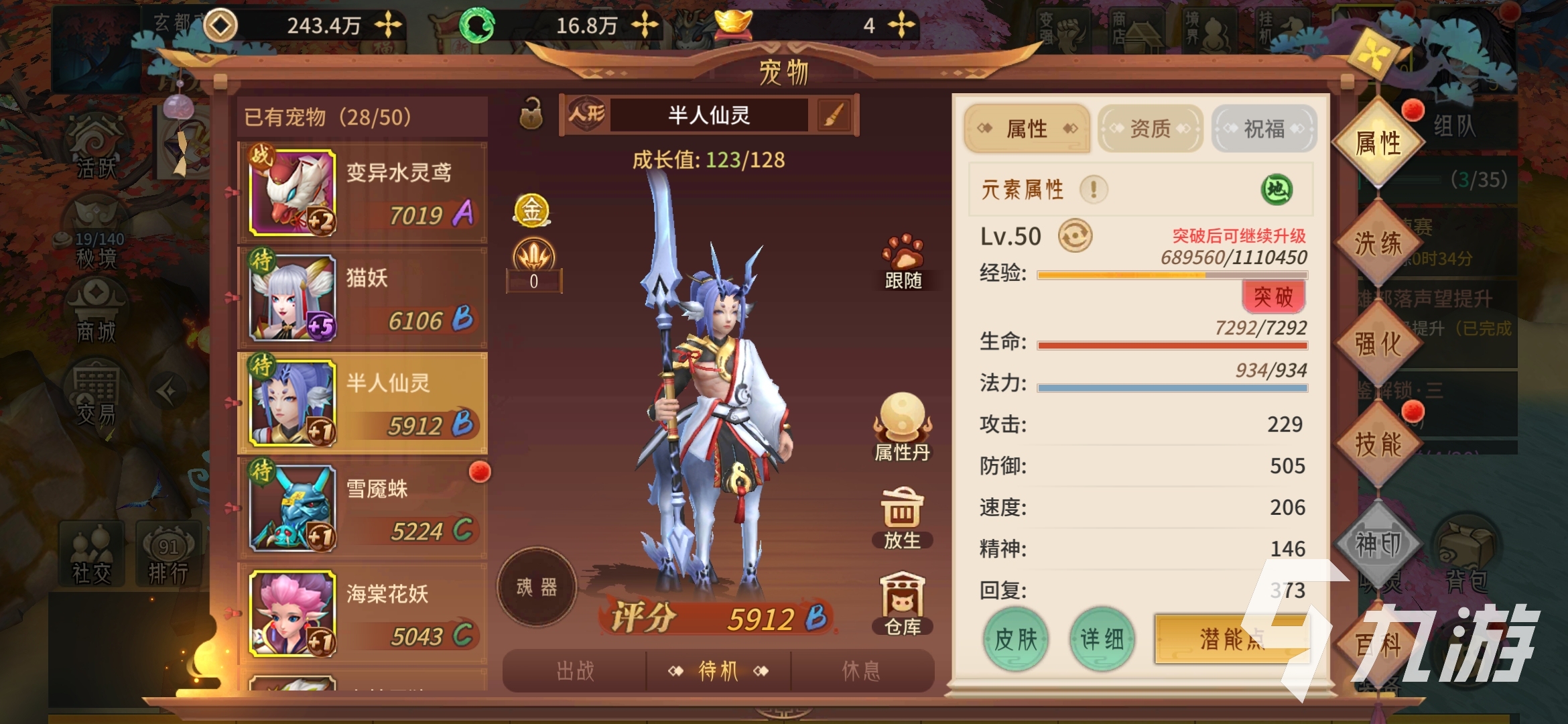 以目前小編的屬性來看,半人仙靈的回血能力大概1300+,回復(fù)量還是不錯(cuò)的,可惜的是只能單體回血。