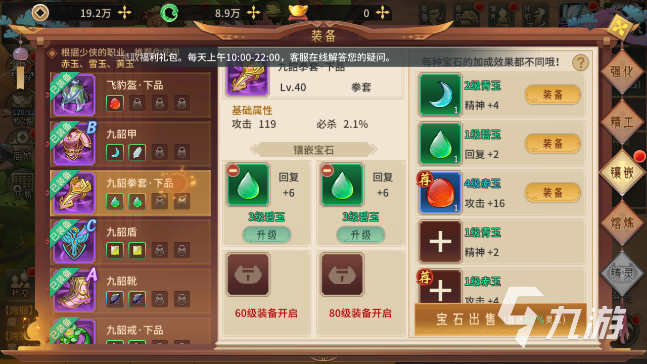 另外就是寶石的鑲嵌數(shù)量,這個(gè)數(shù)量的話是由裝備來(lái)決定的,初始的位置只有一個(gè)可以鑲嵌寶石。當(dāng)裝備的等級(jí)提升到40、60和80的時(shí)候,那么就可以開(kāi)啟新的寶石位置了。在更換裝備的時(shí)候?qū)毷强梢灾苯永^承的,不用玩家進(jìn)行多余的操作。