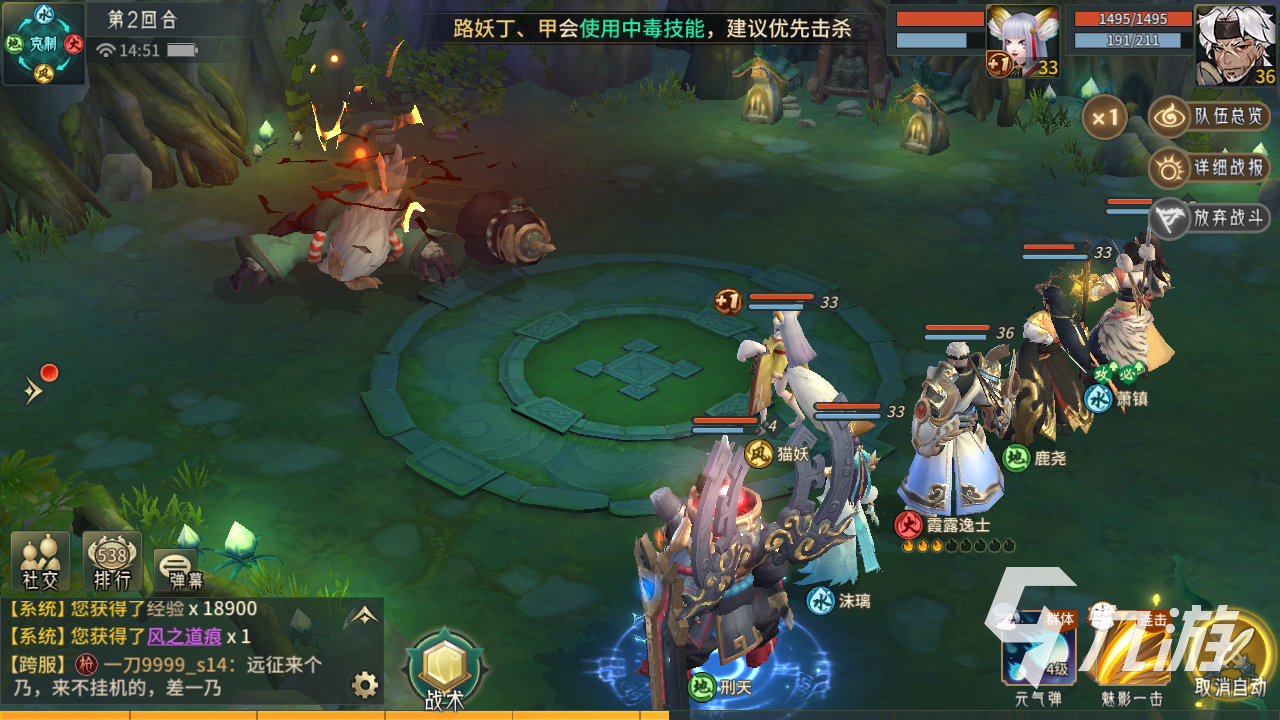 在進(jìn)入到戰(zhàn)斗之后,本次的敵人除了巨魔之外還有其他的妖怪,分別是甲乙丙丁,這幾個(gè)妖怪甲乙會(huì)的技能會(huì)讓玩家的單位中毒。中毒的話不僅會(huì)受到持續(xù)性的傷害,同時(shí)巨魔的輸出還會(huì)獲得不錯(cuò)的提升。