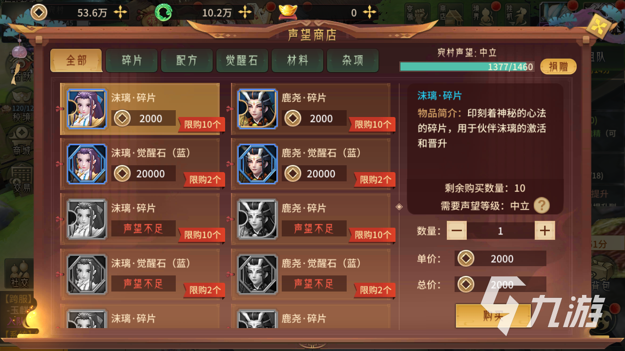 第一個推薦的是伙伴碎片,在戰(zhàn)斗中伙伴的作用就不用小編多說了吧,實力對于隊伍提升是很大的。而伙伴晉升中會消耗很多的碎片,在聲望商店中就有大量的伙伴碎片出售,大家根據(jù)自己的培養(yǎng)伙伴來選擇就可以了。不過要注意,一些高級伙伴兌換是要聲望等級的,所以日常的任務(wù)也要做好。