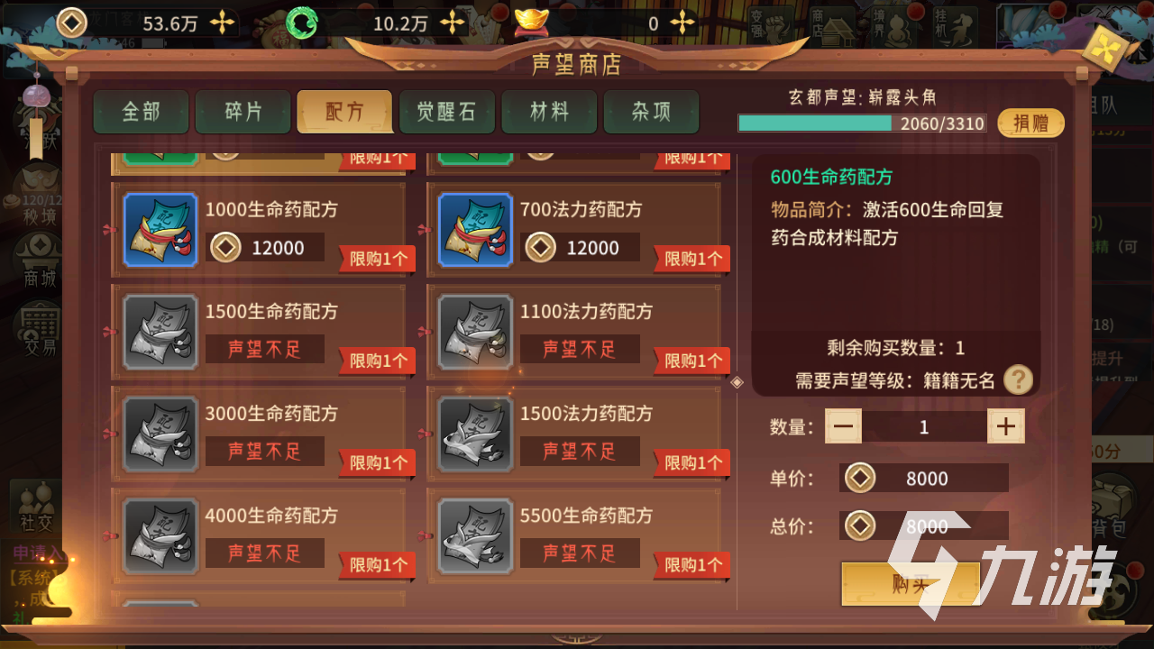 第三個推薦的是各種藥品的配方,這個道具可以說就只有在聲望商店中來獲得了。在部分的特殊戰(zhàn)斗中,戰(zhàn)斗之后是不會恢復(fù)血量的,使用一些藥品就可以帶來不錯的恢復(fù),可以幫助玩家保持好血量繼續(xù)投入到戰(zhàn)斗中。