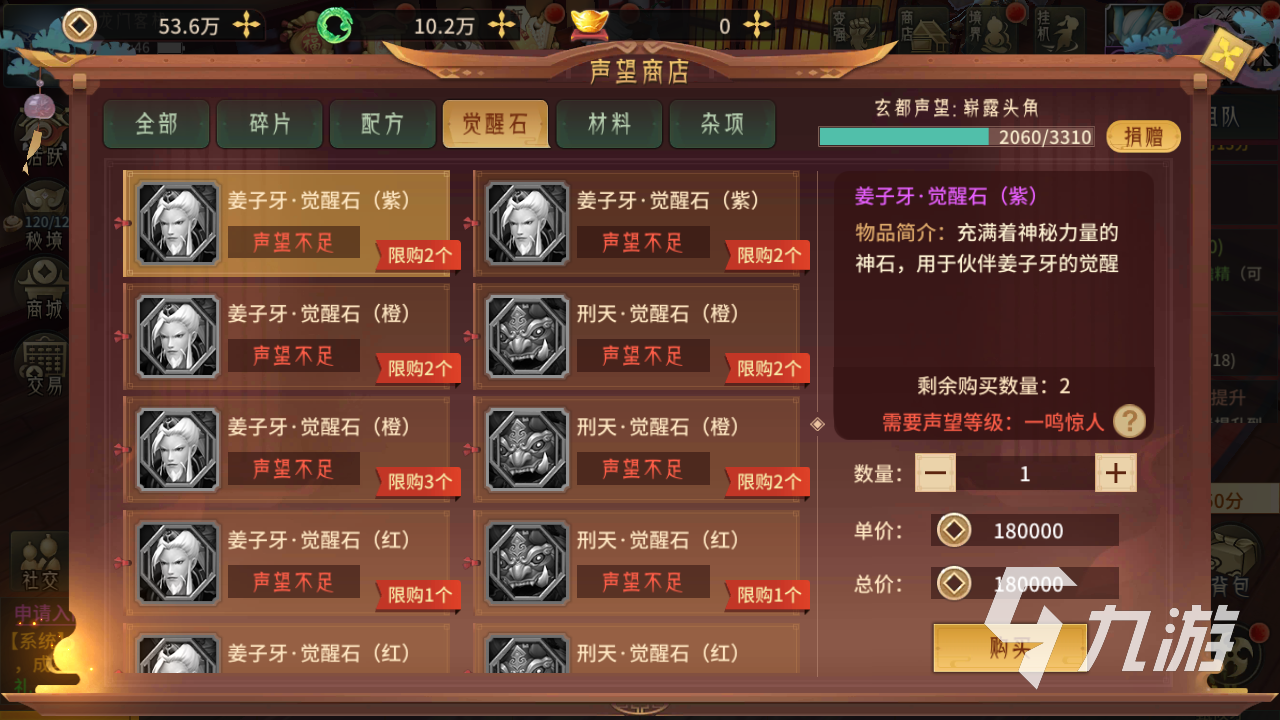 第四個推薦的是覺醒石道具了,這個道具的稀有程度是很高的, 關(guān)系到伙伴的覺醒玩法。不過覺醒石對于聲望等級是有要求的,兌換的消耗也比較大,大家要做好前置的提升。