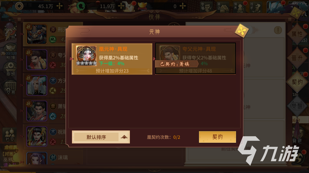 先來說一說契約的操作,在進入到伙伴培養(yǎng)界面之后,點擊契約選擇伙伴之后,在契約界面點擊契約元神就可以來到選擇界面中。在選擇界面中點擊對應(yīng)的元神之后再點擊契約就可以完成操作了,這個操作步驟還是有一些的,大家要注意好操作的問題。