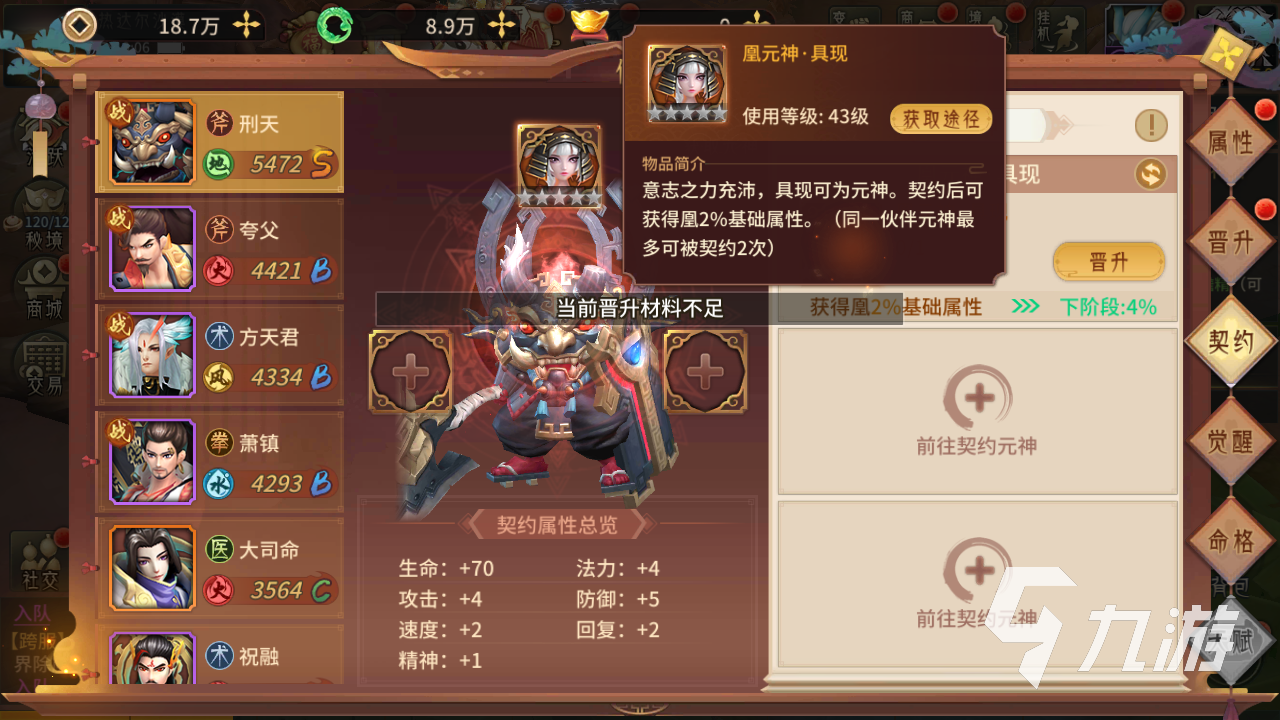在契約好伙伴的元神之后,玩家還可以通過晉升來獲得元神能力的提升。這個晉升也是消耗的伙伴元神材料,培養(yǎng)的消耗還是很大的,大家要了解到。