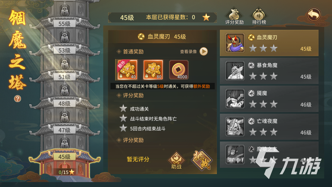 在進(jìn)入玩法界面之后,可以看到這個(gè)和爬塔類型的玩法還是有一點(diǎn)類似的。點(diǎn)擊對(duì)應(yīng)層數(shù)之后可以看到里面的敵人設(shè)定,在每一層的玩法中,都是有五個(gè)敵人要擊敗的。這些敵人也是有通關(guān)星級(jí)設(shè)定的,星級(jí)對(duì)于獎(jiǎng)勵(lì)也是有提升的。除了星級(jí)的要求之外,還有一點(diǎn)大家要注意,那就是通過(guò)的等級(jí)了。只要等級(jí)沒(méi)有超過(guò)關(guān)卡五級(jí),那么在通過(guò)之后是可以獲得額外獎(jiǎng)勵(lì)的,所以說(shuō)等級(jí)也是要注意的一點(diǎn)。
