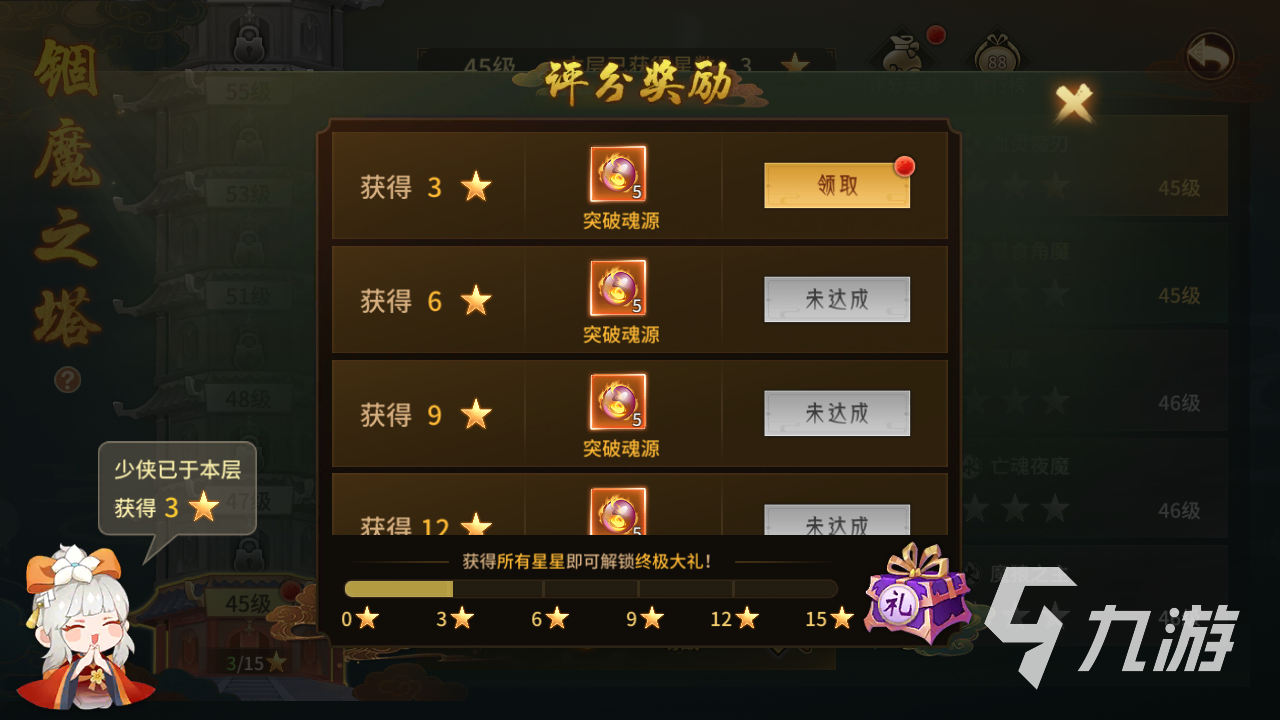 當(dāng)玩家通過(guò)一層五個(gè)關(guān)卡之后,就會(huì)解鎖下一層的挑戰(zhàn),隨著層數(shù)的提升,難度也是會(huì)增加的。層數(shù)在提升的同時(shí),對(duì)于等級(jí)也是有要求的,后面的層數(shù)都是要達(dá)到等級(jí)之后才會(huì)解鎖的,大家也要注意練級(jí)。