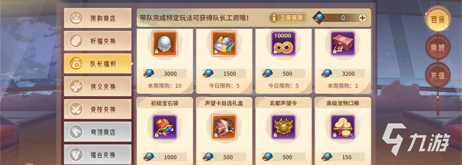 玄都聲望令目前有以下幾種獲取途徑,第一種獲取途徑玩家可前往主界面左上方的商城按鈕進(jìn)入,里面有限購商店,祈福兌換,隊(duì)長福利,俠義兌換,競技兌換以及穹頂商店等等,玩家可點(diǎn)擊隊(duì)長福利中進(jìn)行獲取。
