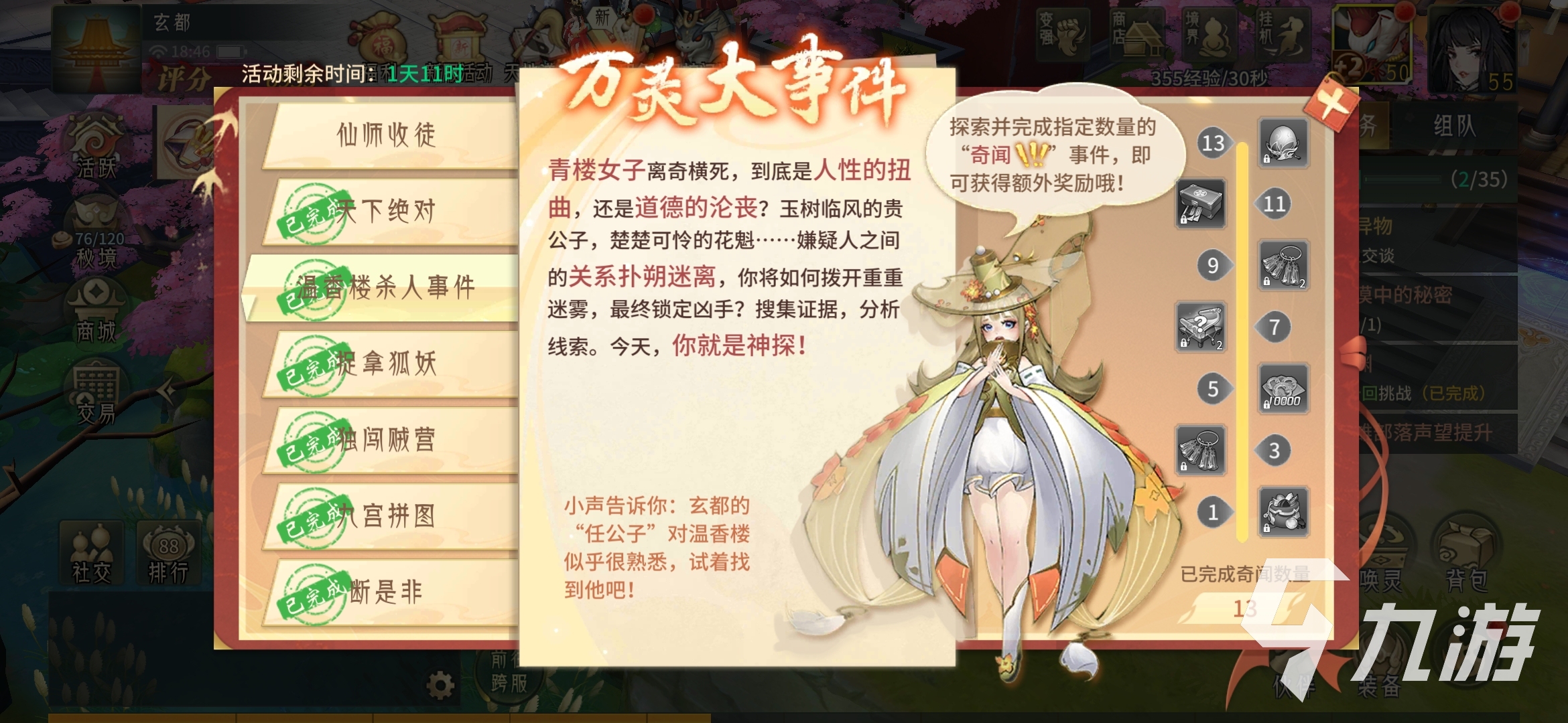 人員:溫香樓的所有npc都需要對(duì)話(huà)領(lǐng)取線(xiàn)索哦。