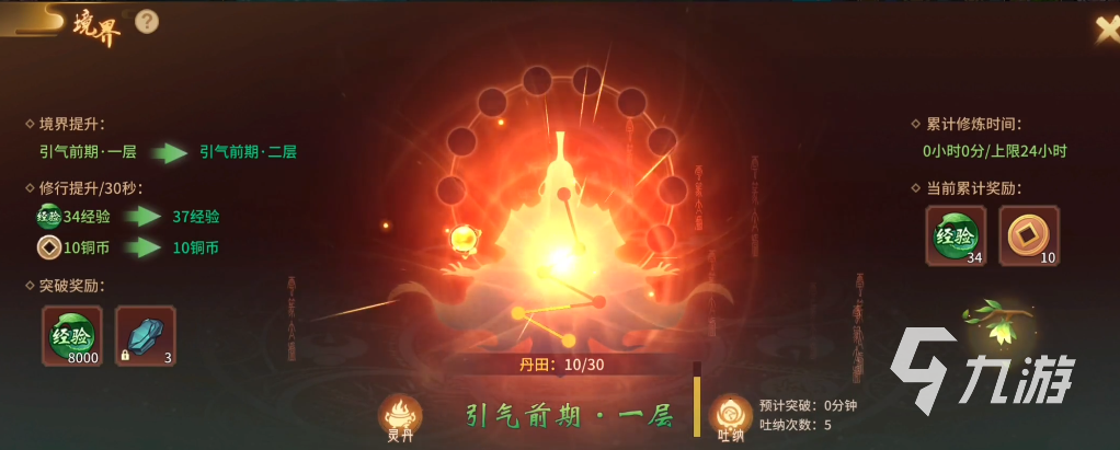 比如說剛解鎖的時候要進行五次的吐納,這個一次吐納就是獲得一次經(jīng)驗和銅幣的收益為準,大概是在三十秒左右。雖然說前期的提升要求不是很多,但是隨著境界的提升,吐納的次數(shù)也是會增加的,這一點大家要注意好。