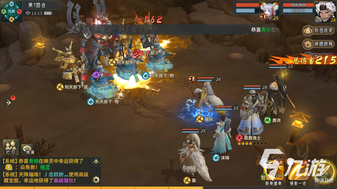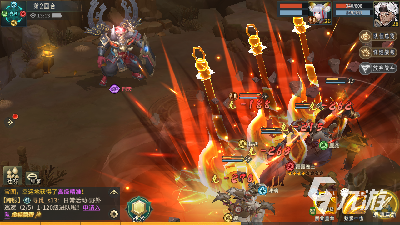 刑天這個敵人的等級是和玩家一樣的,所以說戰(zhàn)斗是無法通過戰(zhàn)斗力來進(jìn)行壓制的。伙伴上這個階段的話還是貓妖寵物和沫璃伙伴比較好,戰(zhàn)斗中有不錯的連擊能力。主角技能的話看玩家是什么職業(yè)的,盡量選擇帶有群攻能力的技能會好很多的, 在戰(zhàn)斗之前盡量的將技能等級升起來。