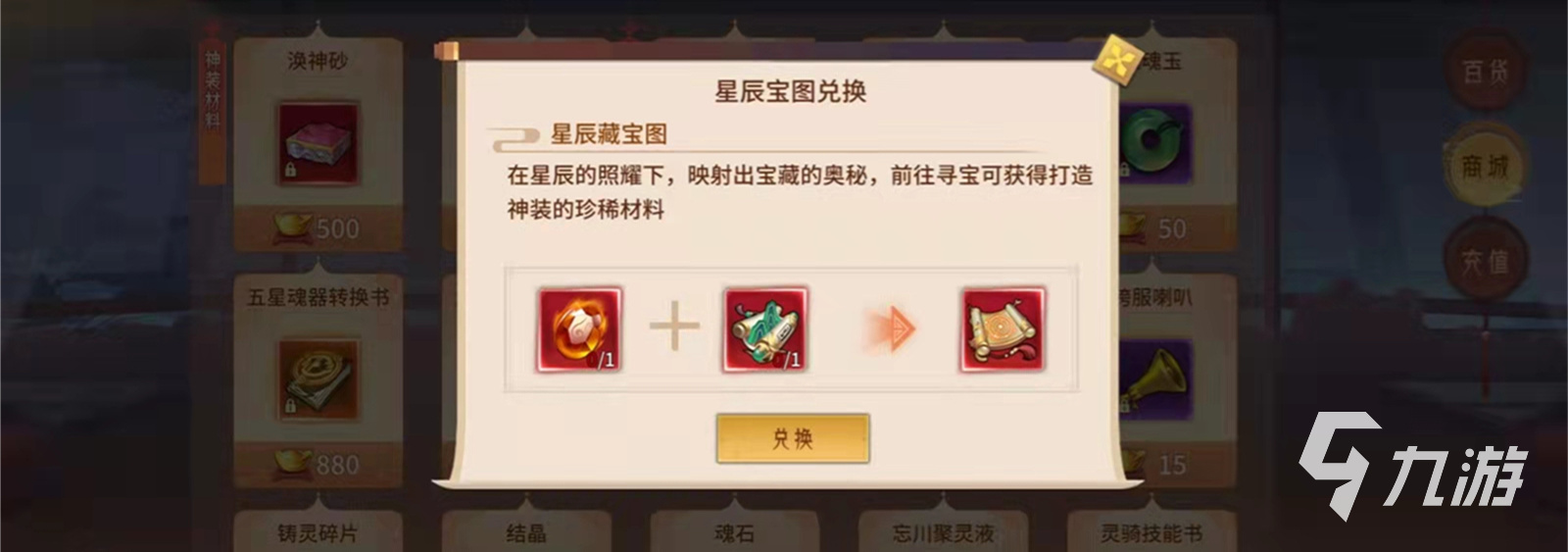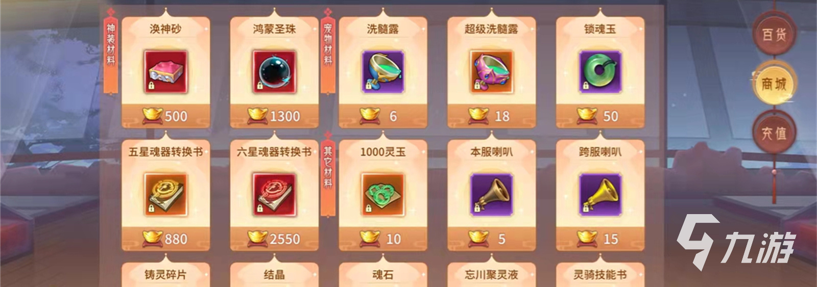 渙神砂的獲取方式非常簡單,新手玩家一學就會,第一種獲取途徑請玩家前往界面左上方的活動商城進入,里面分別有百貨,商城以及充值,玩家可點擊商城進行獲取渙神砂道具,渙神砂需要用500個金元寶來獲取,這是一個神裝材料呦,據說能使元神渙散的晶狀物,散發(fā)著幽幽之氣,是神裝打造和強化的材料之一。