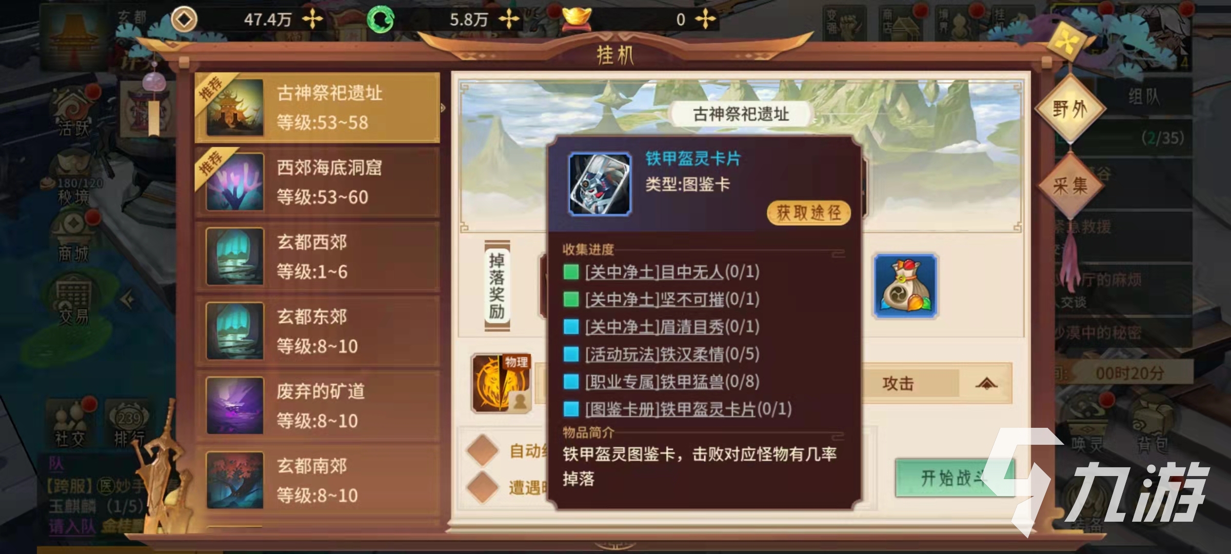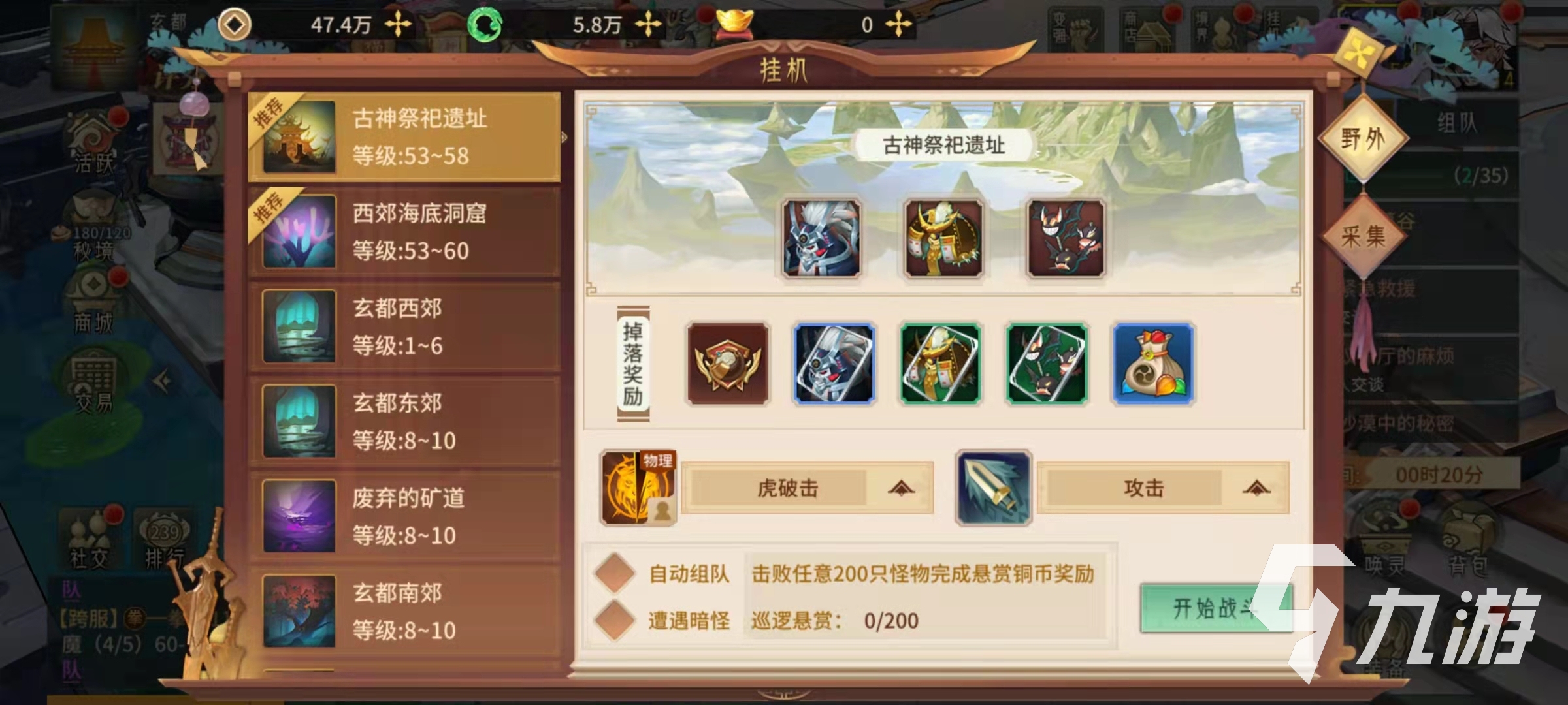 還是以五十級到六十級舉例,古神祭祀遺址可以給桑雄部落的聲望,西郊海底就給曲阜的聲望,這樣大家都可以在列表中看到,按照自己的需要去選擇就可以了。在掛機之前為了提高效率,盡量選擇群攻型的寵物和伙伴,設定好技能就可以輕松掛機了。